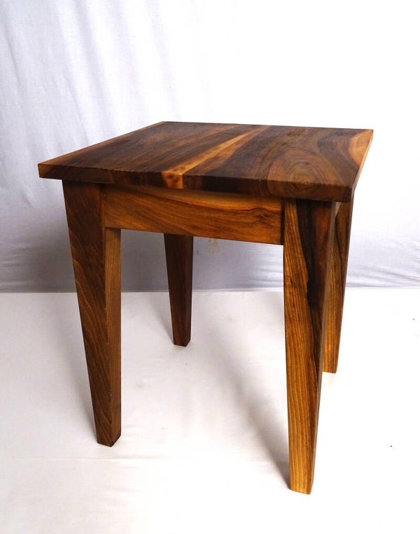 Optisch wacher Küchenhocker aus wildem Nussbaum, gefertigt mit außergewöhnlich Kontrastspiel zwischen Splint- und Kernholz - besitzen, was täglich Freu(n)de macht.