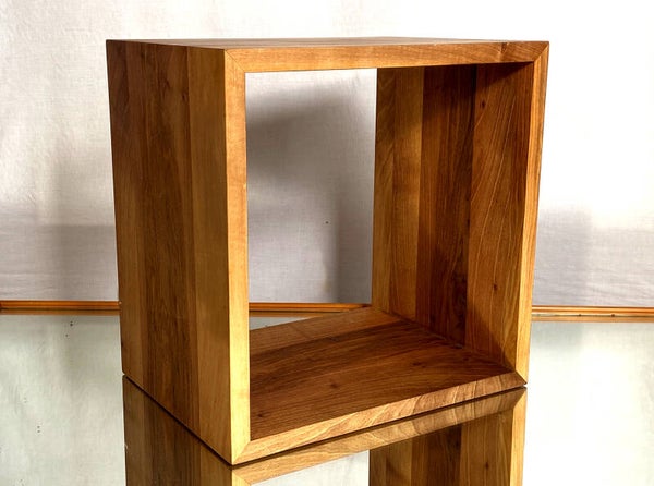 Tisch-, Sitz- oder Regalwürfel aus elegantem Nussholz für die klassisch zeitloses Wohnraumgestaltung