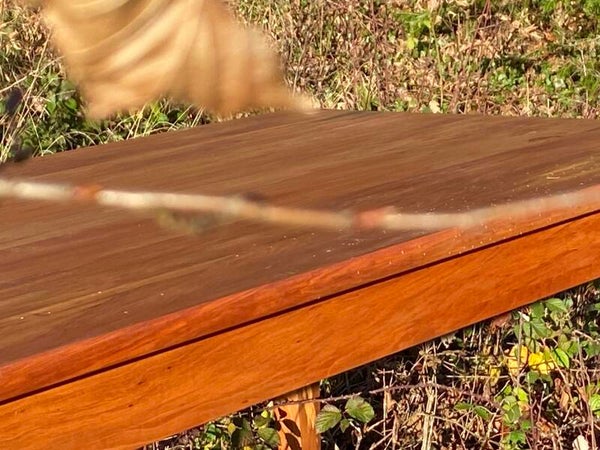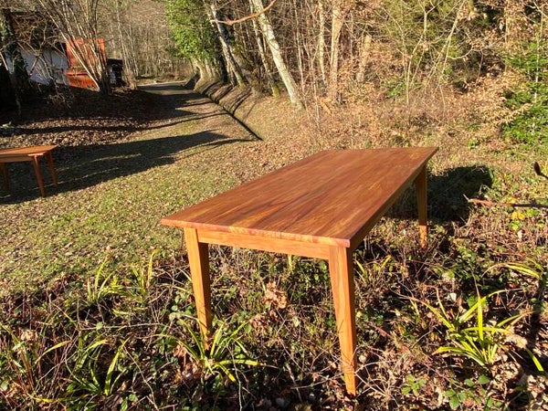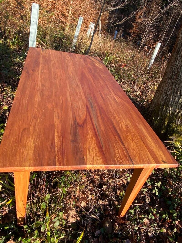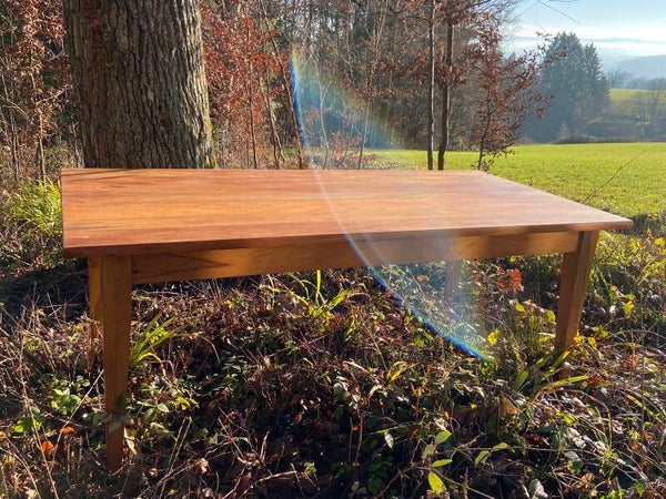 Achtung, hier kommt ein starker Charakter. Ausgesuchtes Birnbaumholz darf hier in seiner ganzen verstockten Schönheit, sorgfältig geölt glänzen. Dieser Tisch passt zu Menschen, die optisch etwas wagen, hier hat die Natur ein wildes Kunstwerk geschaffen mit der Holzmaserung.