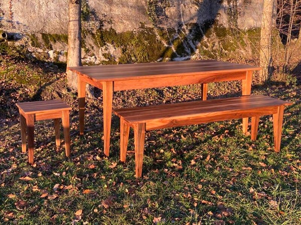 Sitzbank, Holzbank aus dem Holz eines wilden Birnbaums