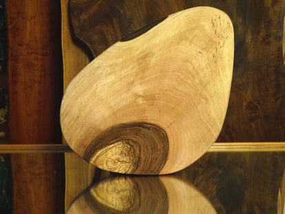 Ein Frühstücksbrettchen für Hungrige. Der Clou ist die halbrunde Waldkante dieses Einzelstücks aus Eschenholz.