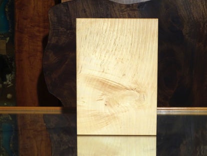 Manche sehen eine Maria, andere einen auftauchenden Fisch in der Maserung dieses Küchenbretts aus Ahornholz. Was auch immer Sie sehen, gut schaut dieses Brettchen sowohl in der Küche wie auch auf Tisch aus.